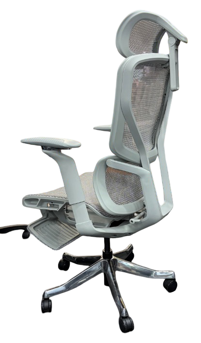 With 11-point adjustability for complete ergonomic alignment. Its double layer U-Mesh elastic wrapping ensures cool, breathable comfort all year-round. The lumbar support is optimally curved and auto dynamic for maximum release of spinal pressure. Constructed with a strong 350mm polished aluminium base the Kelly Ergo Chair is designed with a focus on ultimate comfort, personalisation, aesthetics and technology.