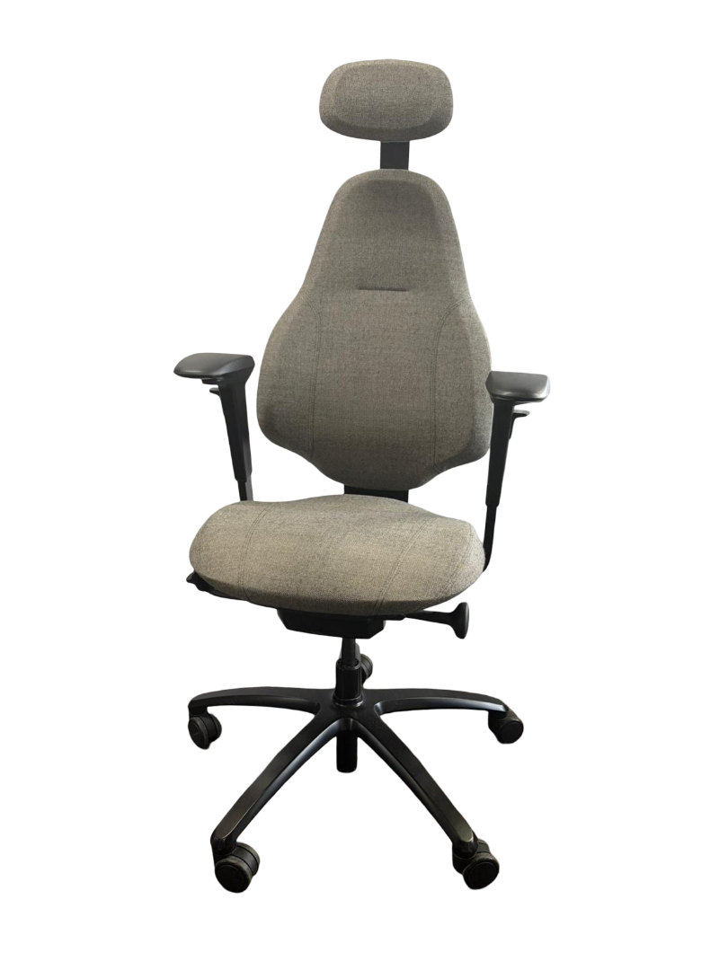 The RH Mereo 220 features a wide, gently curved backrest designed for comfort and support. It comes standard with soft-floor castors and a sturdy base made from durable aluminium and plastic. The chair can be customised with a variety of optional extras and accessories to suit different needs.